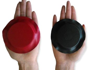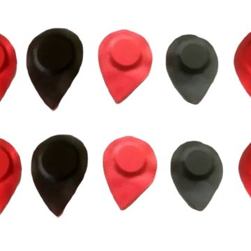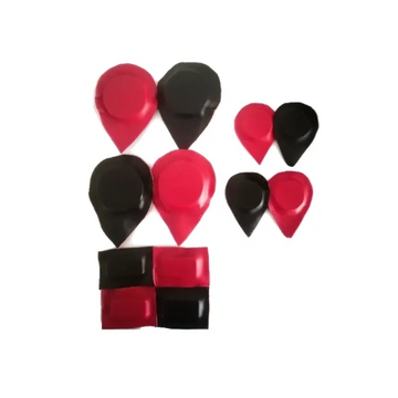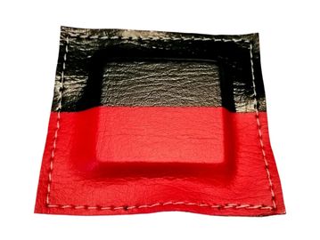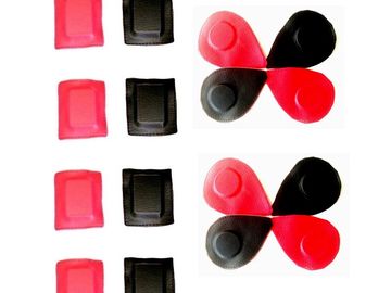 Imanes forrados con sus polos identificados polo positivo color rojo , polo negativo color negro.
